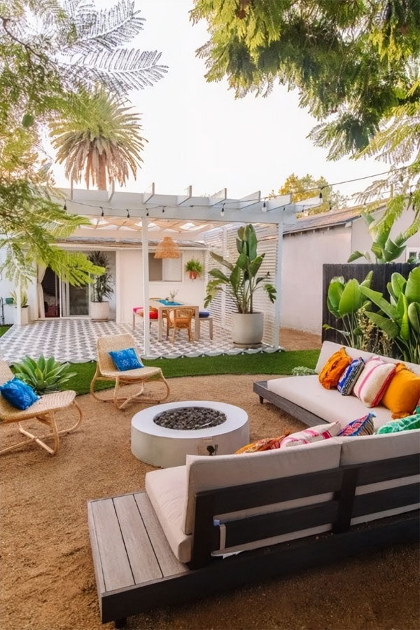 在你的小院有一个自然砂土质感的铺装地面,可以为你的家带来一丝乡村原野的度假体验感。自然砂土铺地并不是直接在小院地面铺设沙子和土壤,而是采用混合骨料分层夯实的施工做法。这样,会防止花园地面沉降,即使在下雨的天气下,地面也不会被雨水冲坏。砂土物料材质能够充分模仿出天然裸露的地表,让你身心陶醉在与大自然相融合的氛围中。