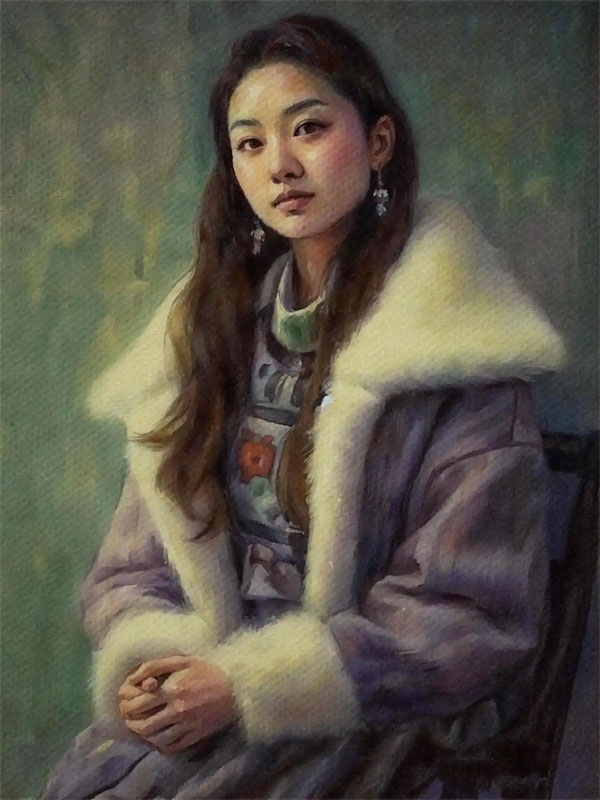 油画-画布上的女人_合肥定制肖像油画_照片变油画