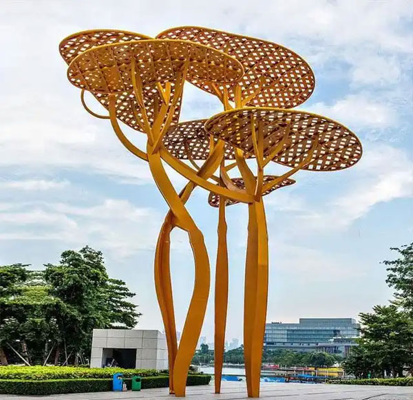 抽象、大树、植物金属雕塑_金色雕塑定制厂家