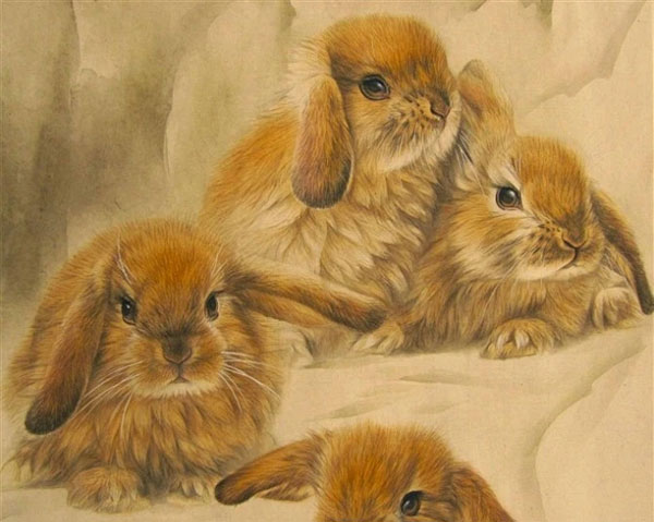 兔子油画作品_动物油画定制_合肥宠物油画定做公司