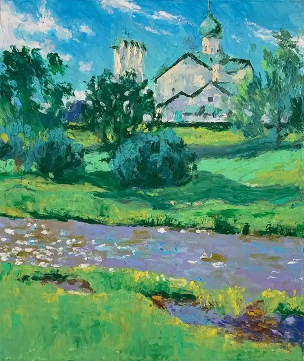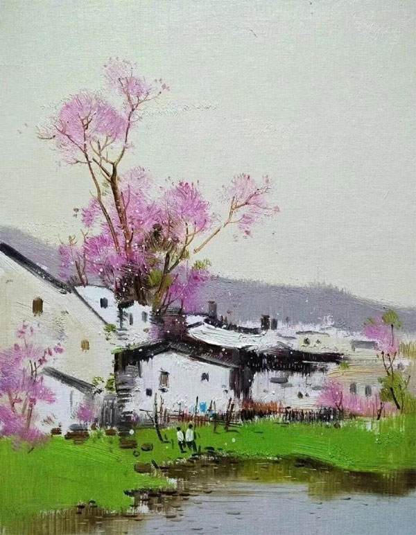 乡村实景油画_印象主义油画定制_合肥油画家推荐