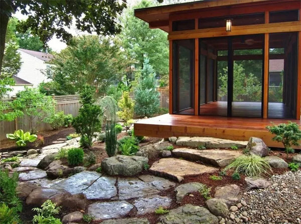 私人会所后花园造景设计_庭院门口斜坡如何设计?