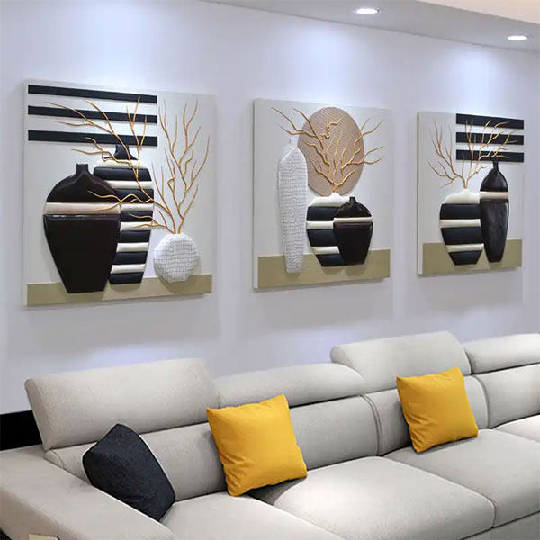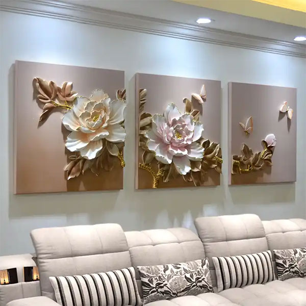 家装客厅常见三联立体挂画_合肥新房装修浮雕画
