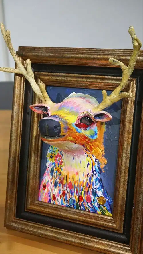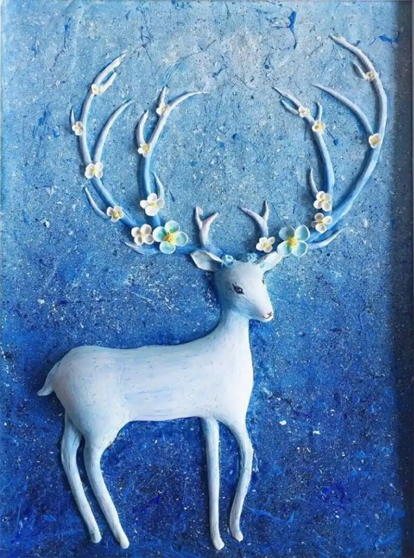 定制浮雕画推荐皖韵画廊_蓝色浮雕画-鹿