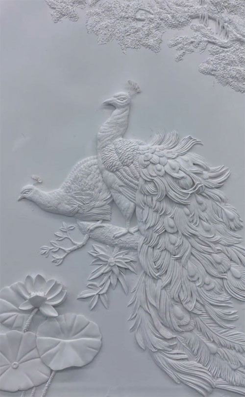 浮雕壁画设计、制作_浮雕孔雀图_合肥皖韵画廊