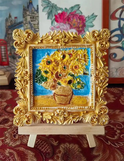 浮雕画制作-梵高向日葵_向日葵浮雕画、带框