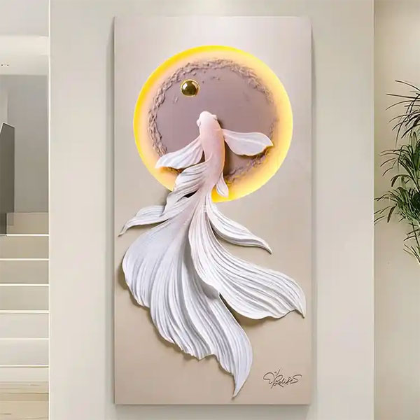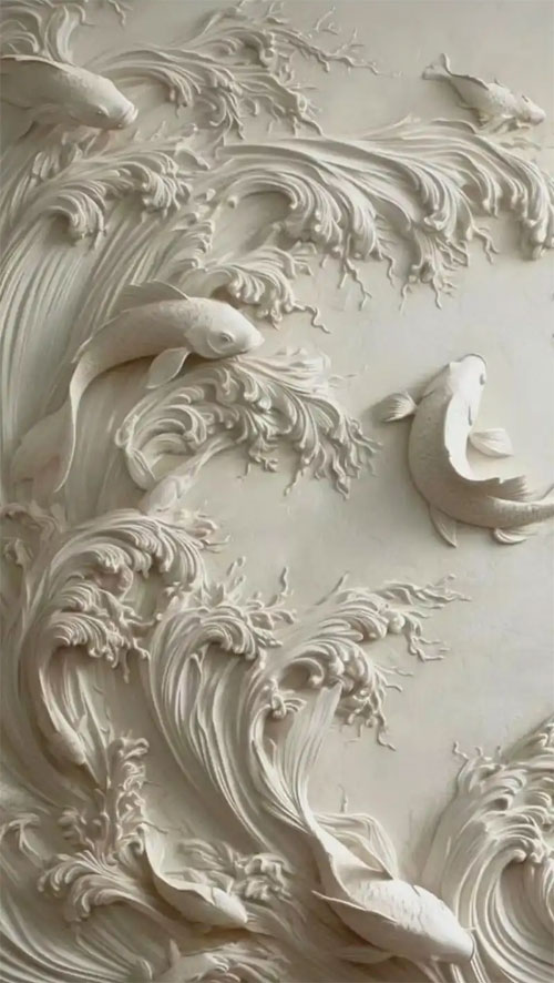 浮雕锦鲤背景画_合肥墙面浮雕画定做_皖韵画廊