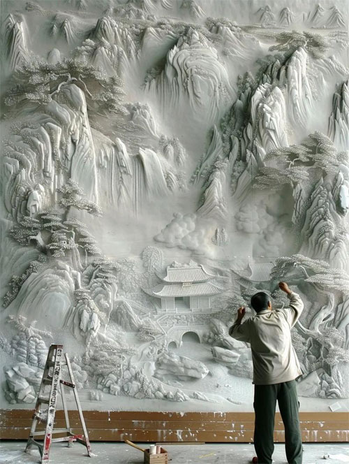 浮雕山水画定制_合肥玄关浮雕画定做公司