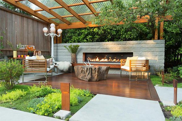 合肥庭院设计:有玻璃遮雨顶的防腐木花园