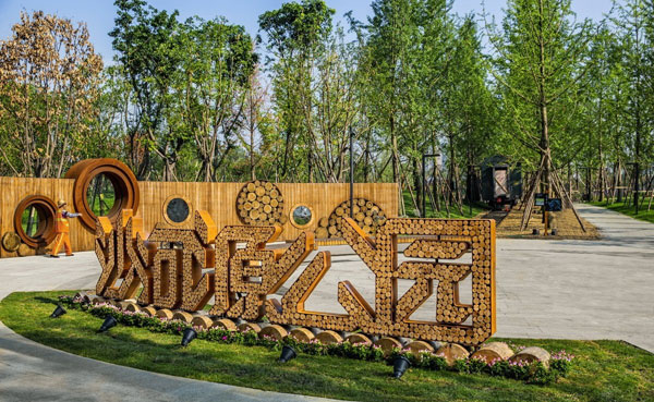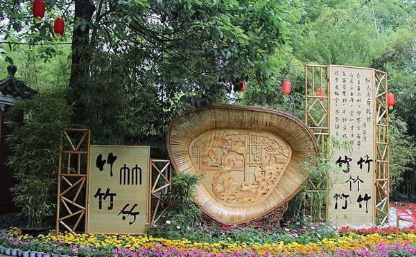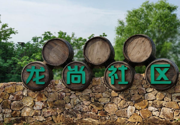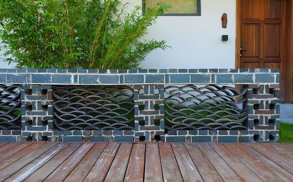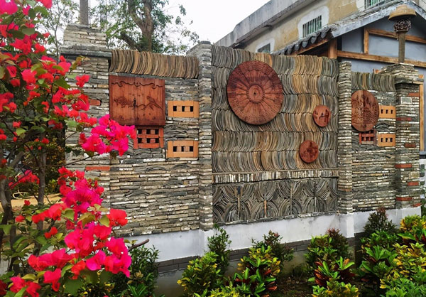 庭院围墙景观设计_传统特色的圆形木雕和方形木块