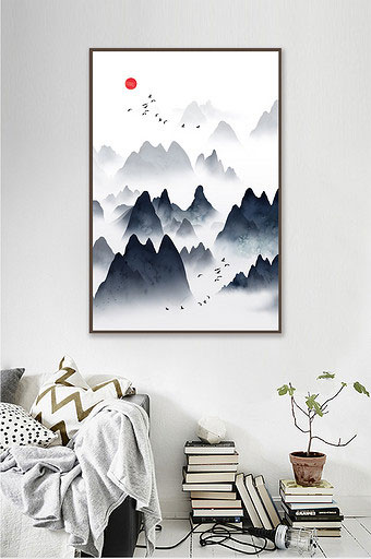 新中式水墨山水装饰画_日出装饰画定制_安徽皖韵画廊