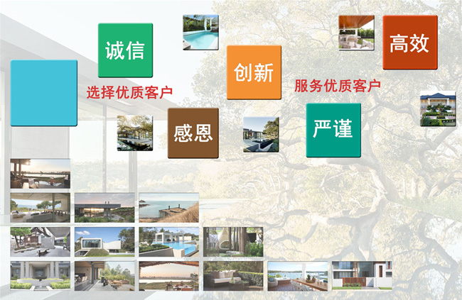 我们的施工队伍高素质、高标准、高质量、高技术、高要求,统一管理,标准化施工,公司承诺一年质保,终身提供售后服务。设计强调量身定做、别具匠心,为满足不同客户群对庭院设计的个性需求,公司提供专业景观设计师全程一对一的贵宾式服务,从项目的前期沟通、整合到后期的方案创作、施工,无不经过团队每一个人的专注倾心,每一张图纸都能满足您对高端景观的需求、体现您对艺术不凡的品位。